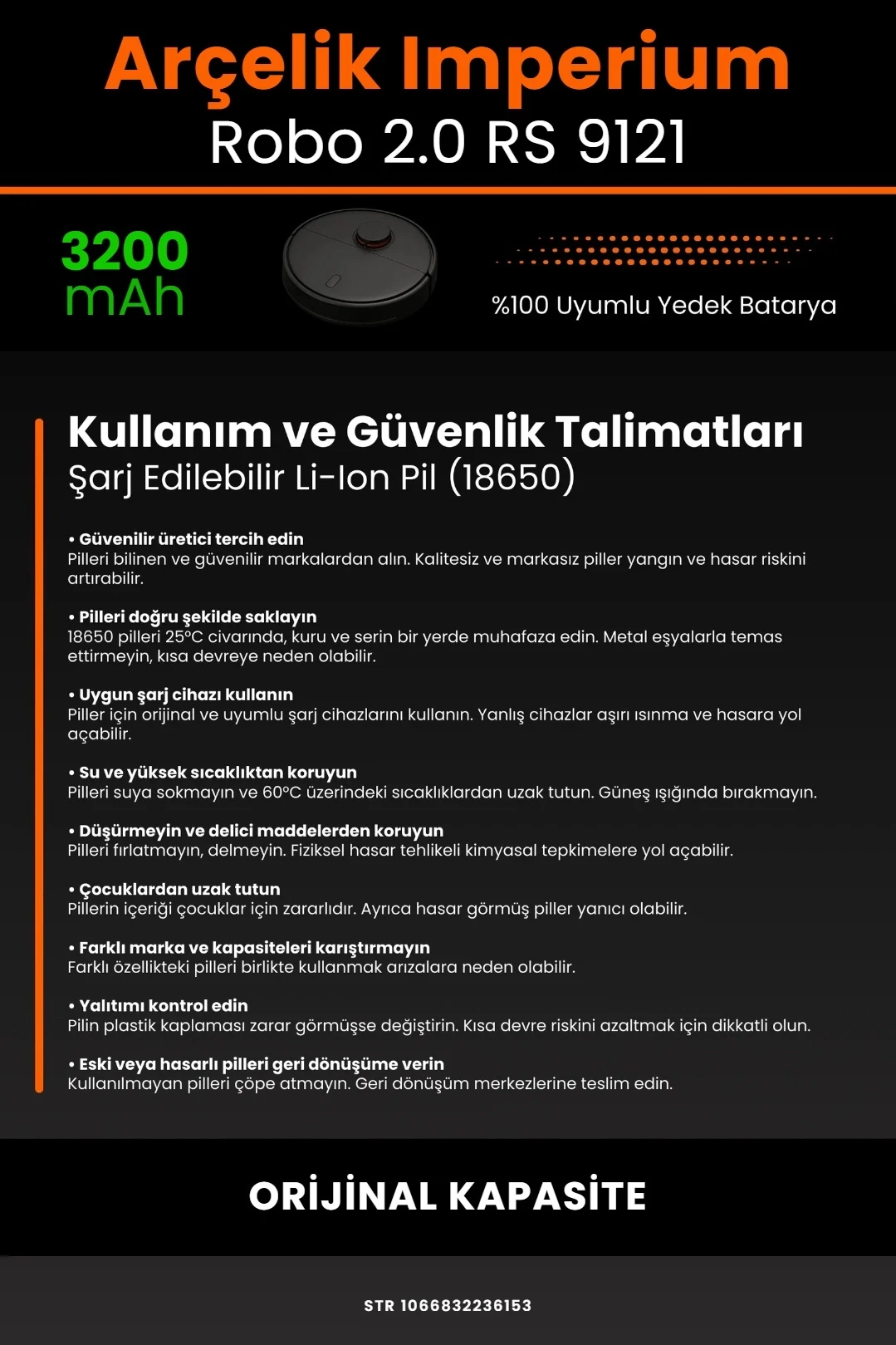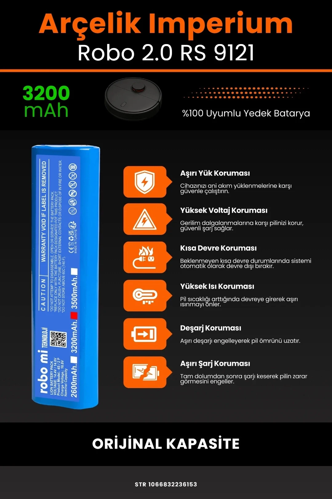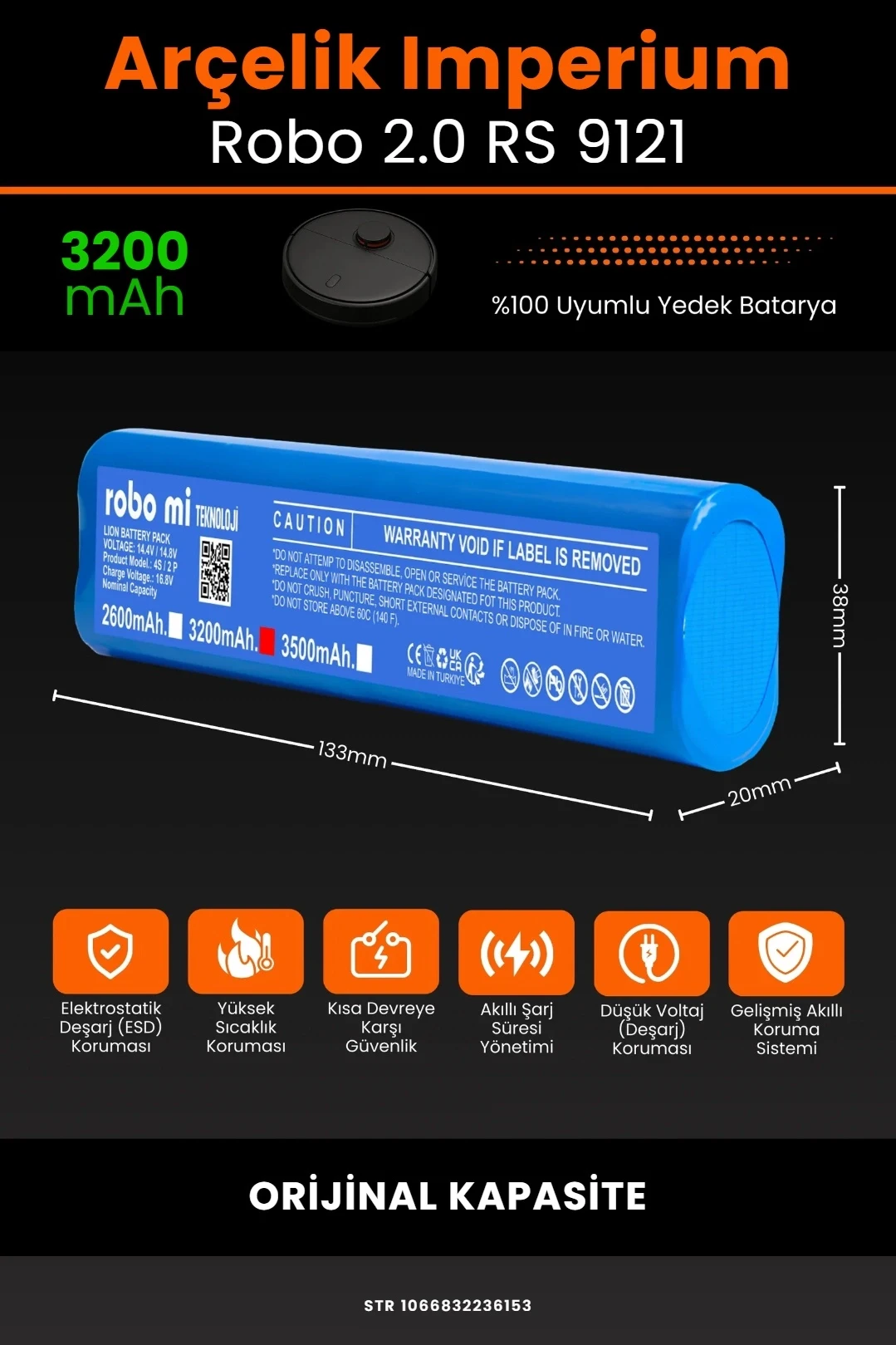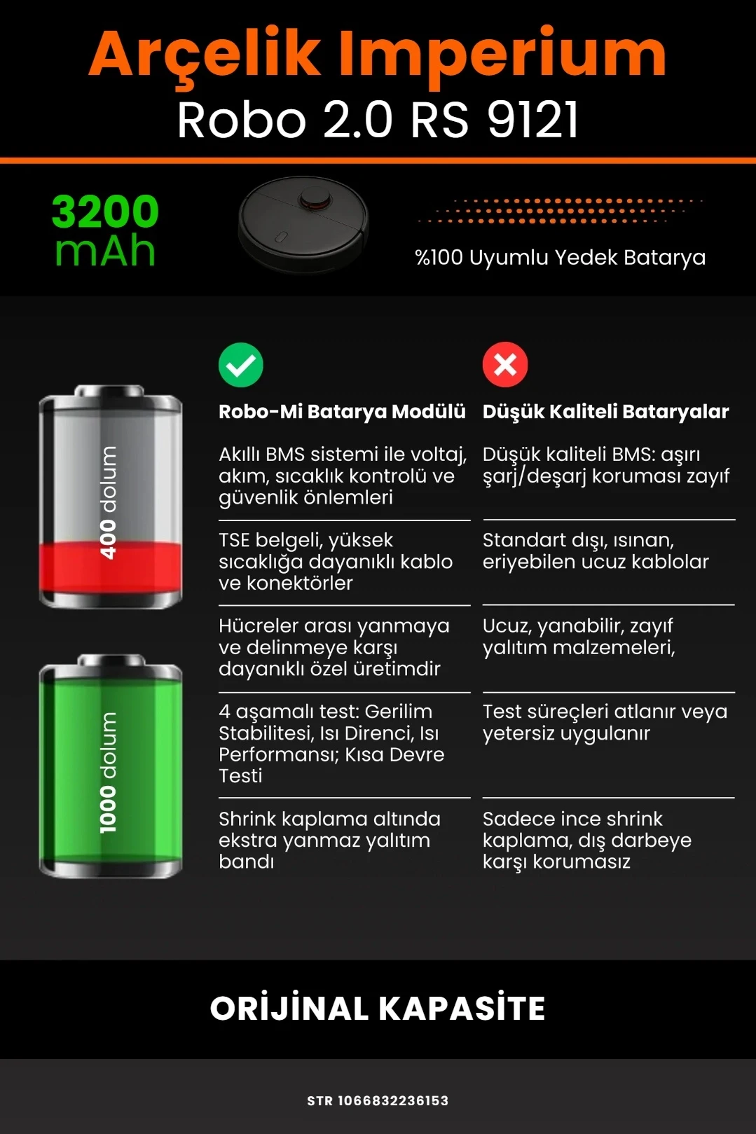 ■ ROBO Mİ ARÇELİK İMPERİUM ROBO 2.0 RS 9121 UYUMLU 3200mAh ROBOT SÜPÜRGE BATARYASI