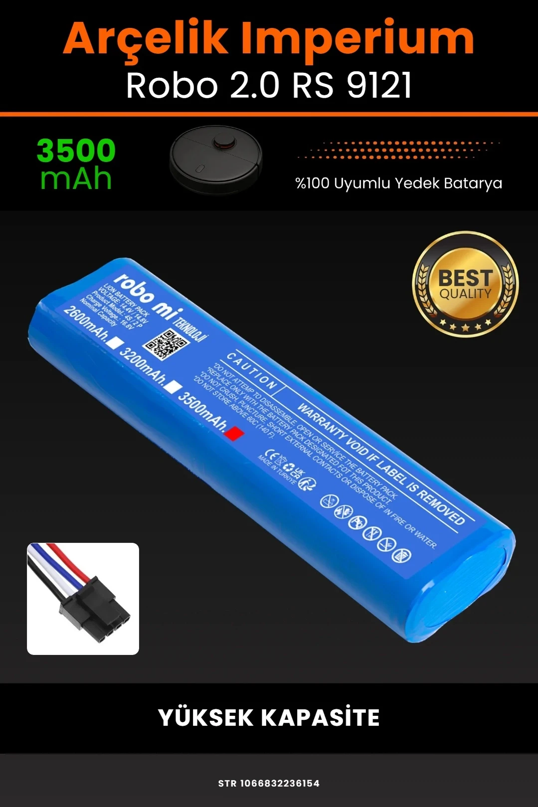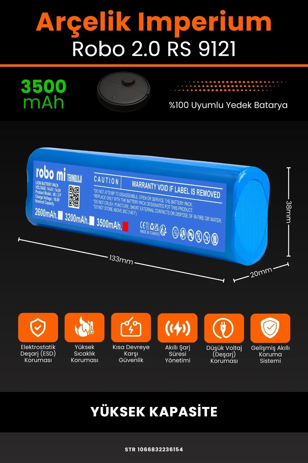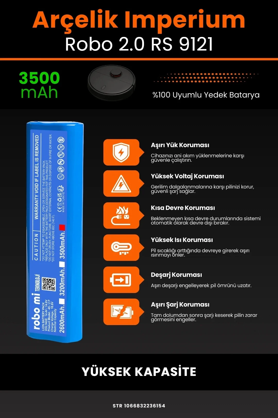 ■ ROBO Mİ ARÇELİK İMPERİUM ROBO 2.0 RS 9121 UYUMLU YÜKSEK KAPASİTELİ ROBOT SÜPÜRGE BATARYASI