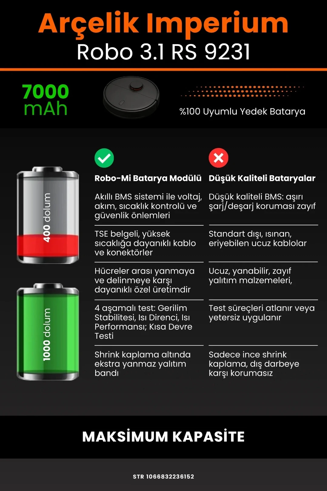 • Model Uyumu: Arçelik Imperium Robo 3.1 RS 9231