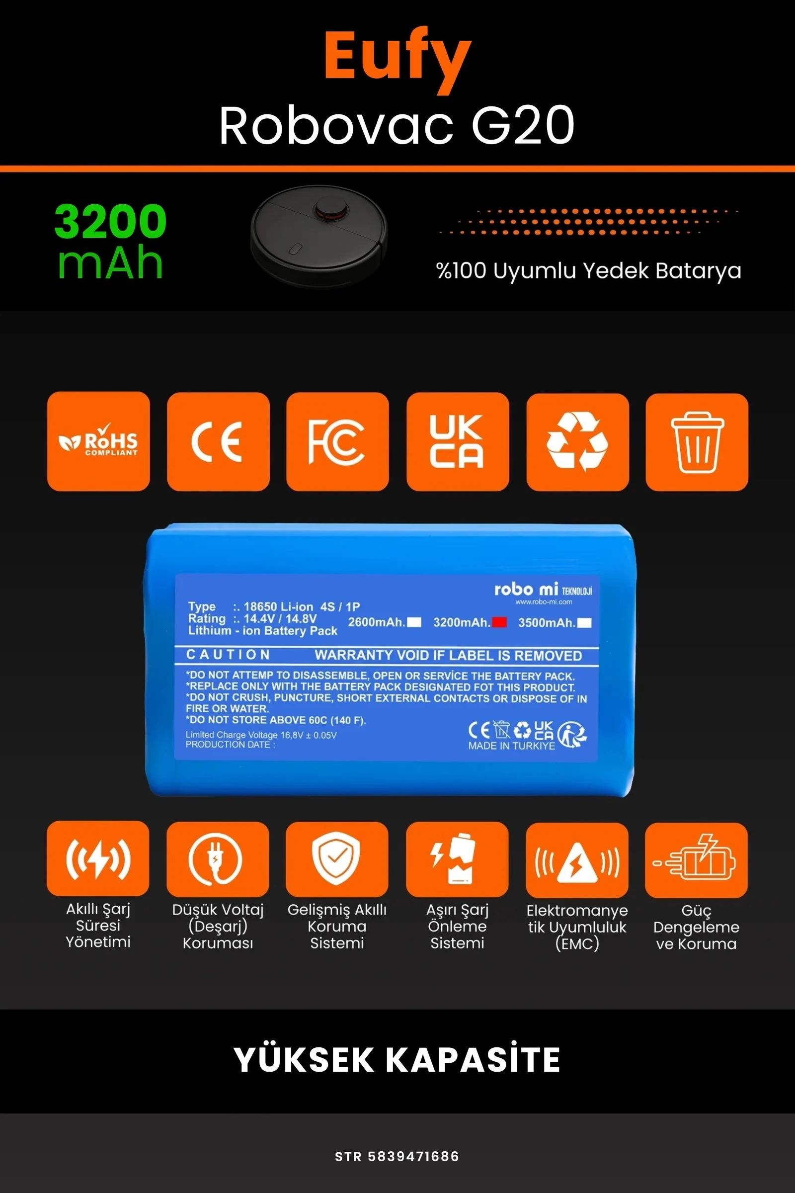 Robot süpürgenizin temizlik gücünü yeniden keşfetmeye hazır olun. Zamanla performansı azalan, şarjı çabuk tükenen robot süpürgeler için özel olarak geliştirilen 3200 batarya, Eufy Robovac G20 modelinizle tam uyum içinde çalışarak cihazınıza uzun ömür ve istikrarlı enerji sağlar.