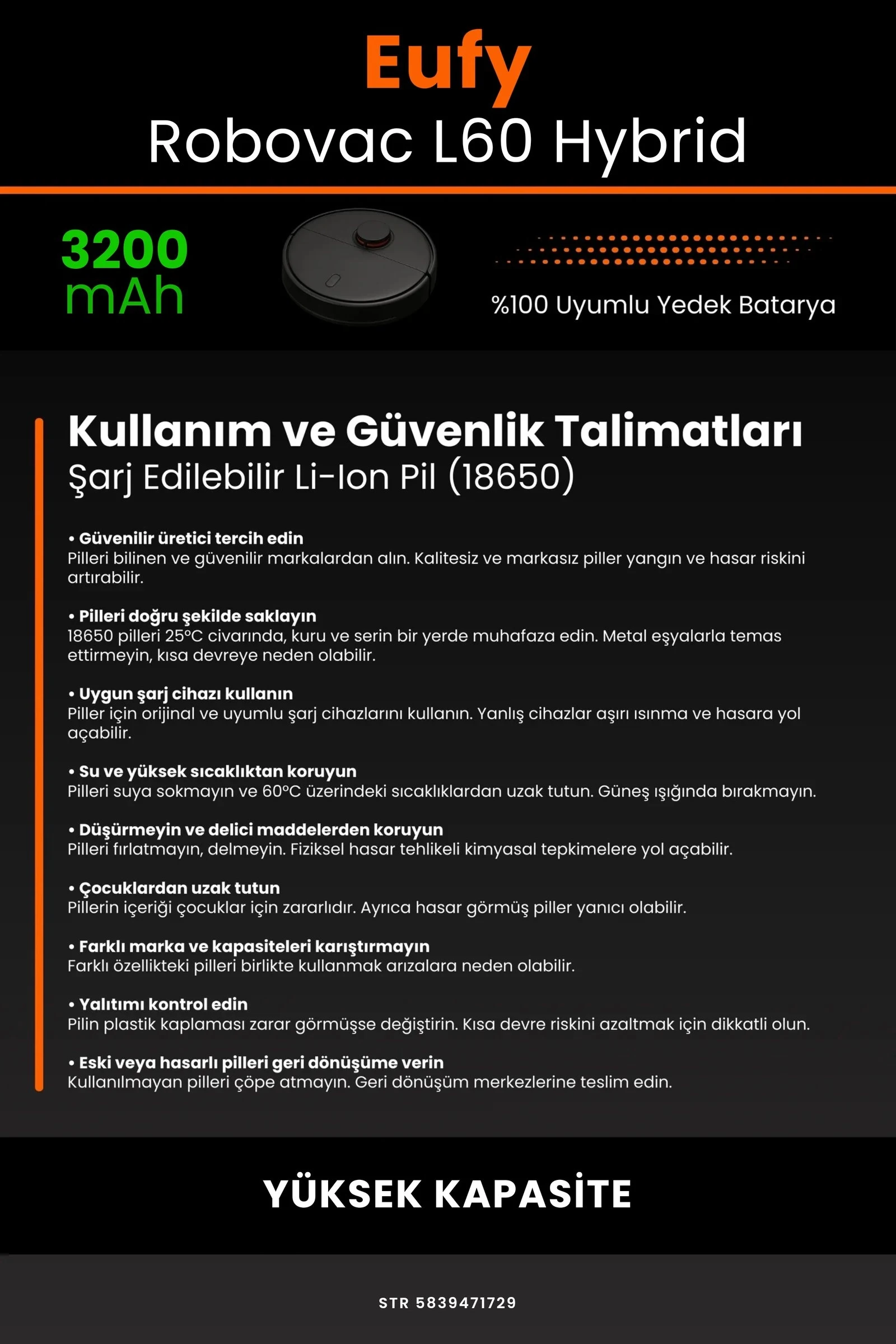 Eufy Robovac L60 Hybrid 3500.mAh Robot Süpürge Bataryası - Gerçek Kapasite - Maksimum Güvenlik