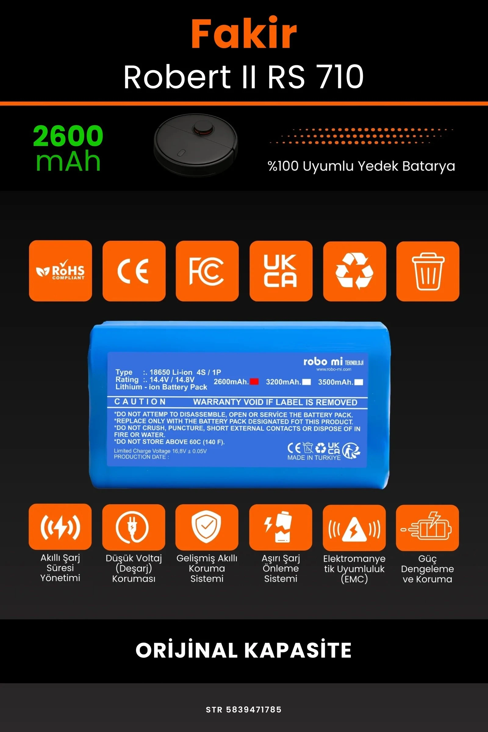 Fakir Robert II RS 710 2600 Robot Süpürge Bataryası