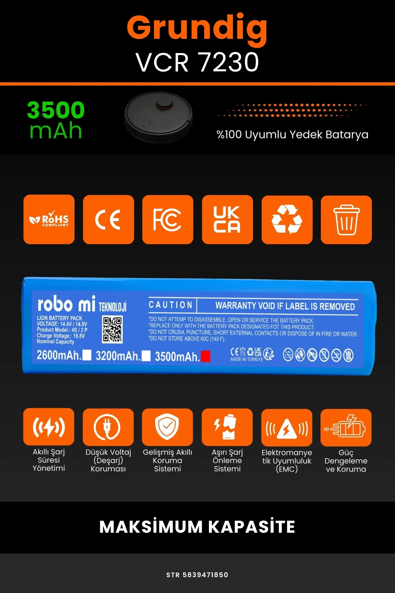 Robo-Mi / Grundig VCR 7230 3500.mAh Robot Süpürge Bataryası