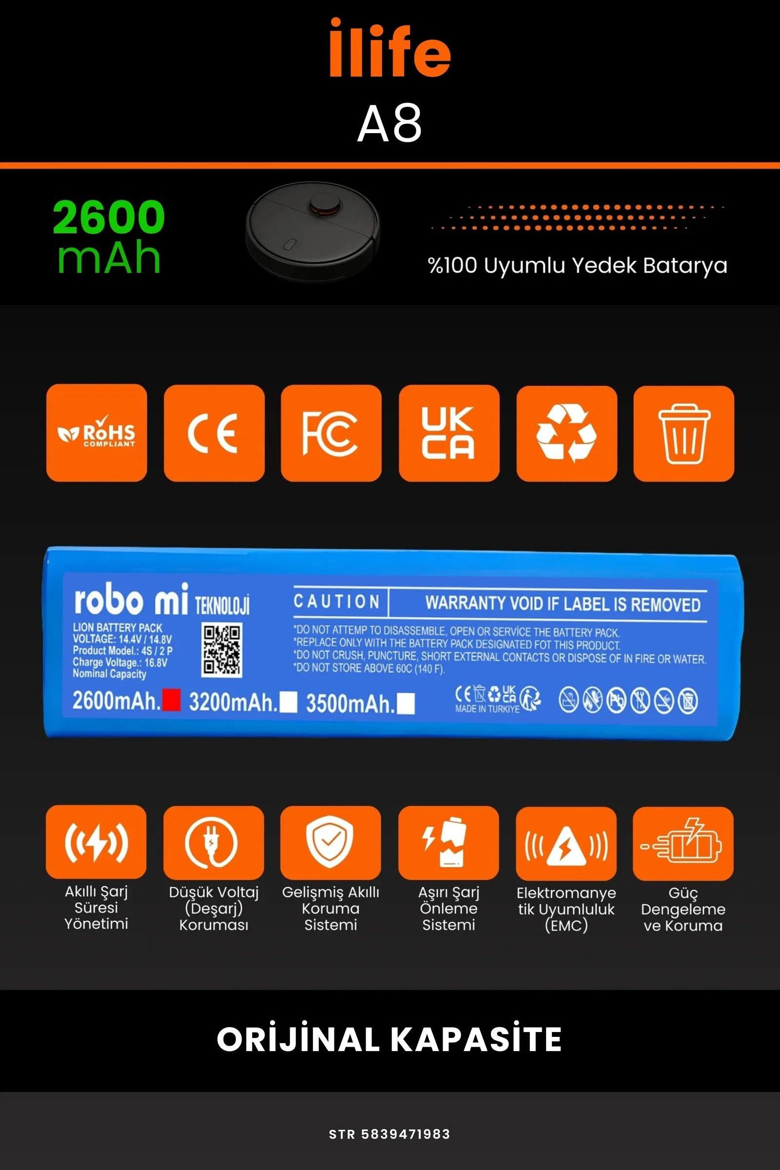 Robot süpürgenizin temizlik gücünü yeniden keşfetmeye hazır olun. Zamanla performansı azalan, şarjı çabuk tükenen robot süpürgeler için özel olarak geliştirilen 2600mAh batarya, Robo-Mi İlife A8 modelinizle tam uyum içinde çalışarak cihazınıza uzun ömür ve istikrarlı enerji sağlar.