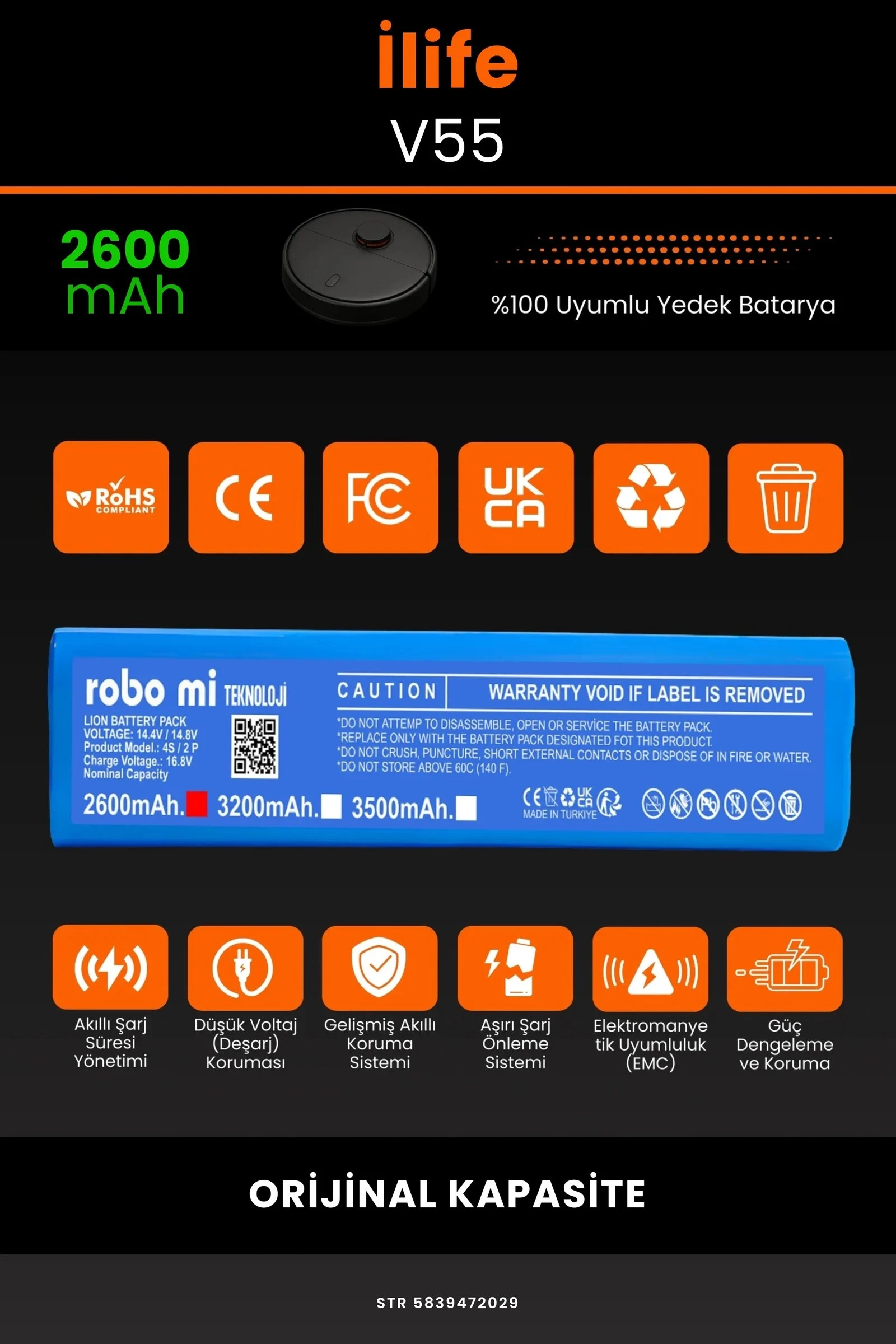Robot süpürgenizin temizlik gücünü yeniden keşfetmeye hazır olun. Zamanla performansı azalan, şarjı çabuk tükenen robot süpürgeler için özel olarak geliştirilen 2600 batarya, İlife V55 modelinizle tam uyum içinde çalışarak cihazınıza uzun ömür ve istikrarlı enerji sağlar.