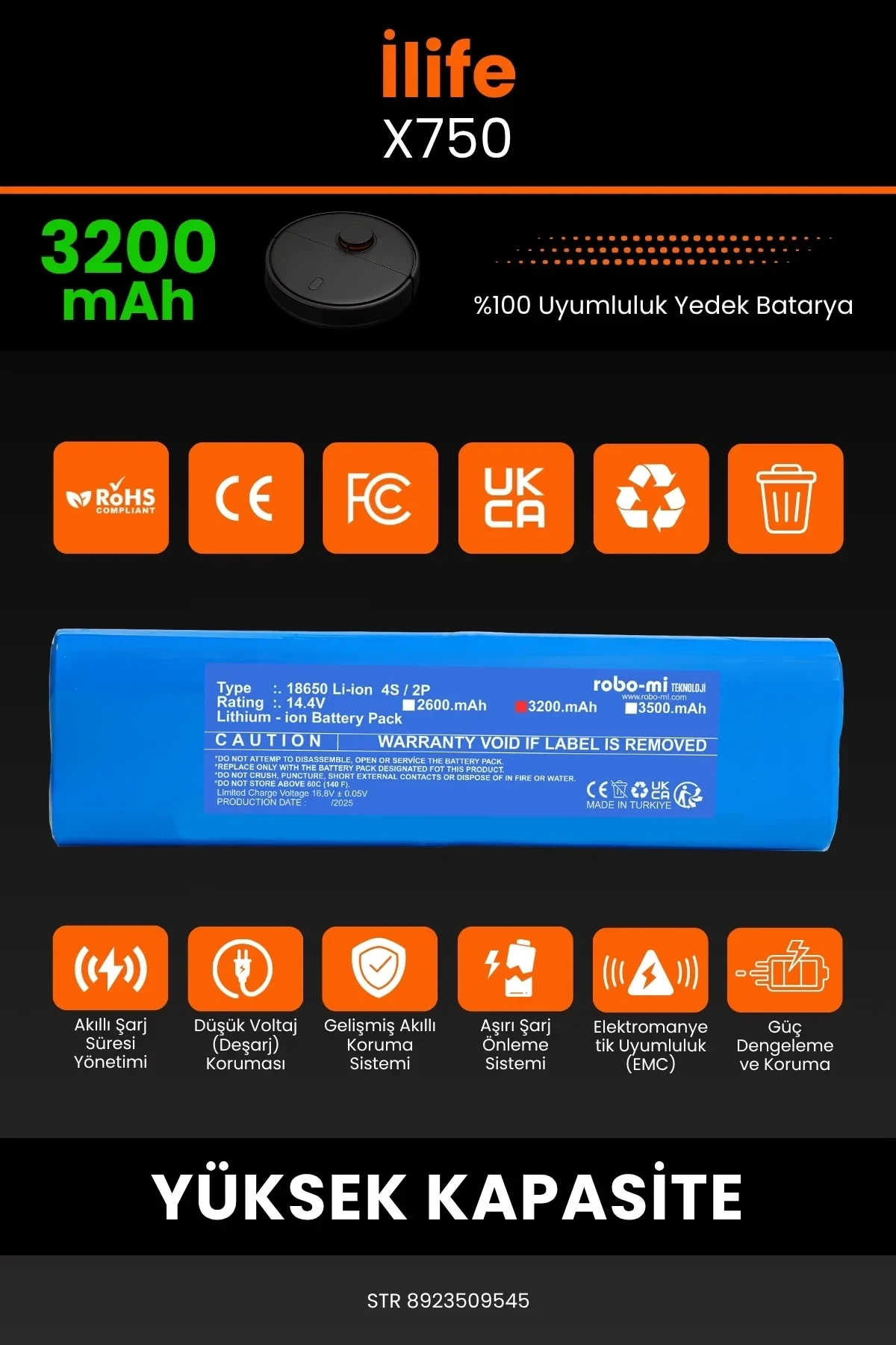Robot süpürgenizin temizlik gücünü yeniden keşfetmeye hazır olun. Zamanla performansı azalan, şarjı çabuk tükenen robot süpürgeler için özel olarak geliştirilen 3200 batarya, İlife X750 modelinizle tam uyum içinde çalışarak cihazınıza uzun ömür ve istikrarlı enerji sağlar.