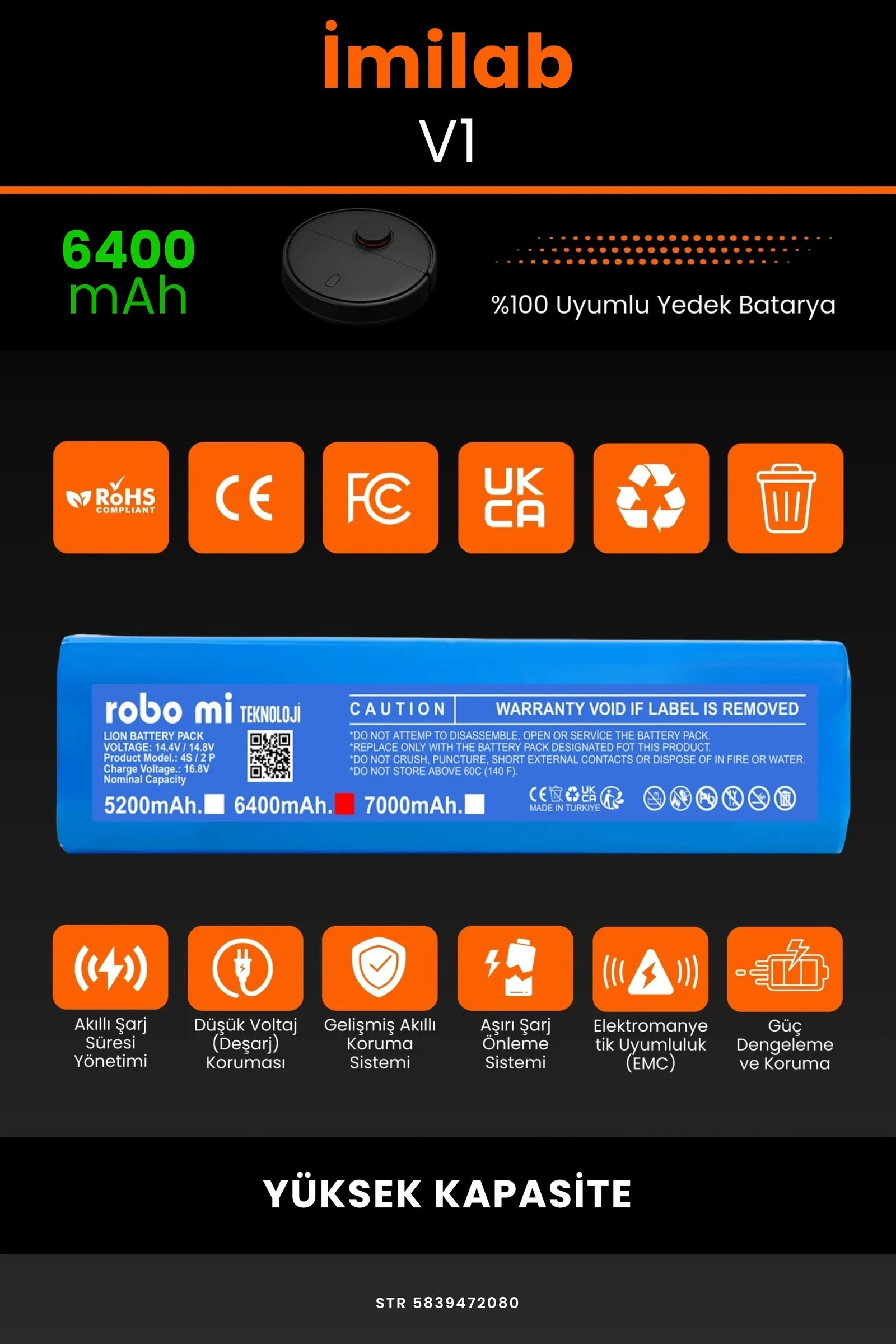 İmilab V1 6400 Robot Süpürge Bataryası