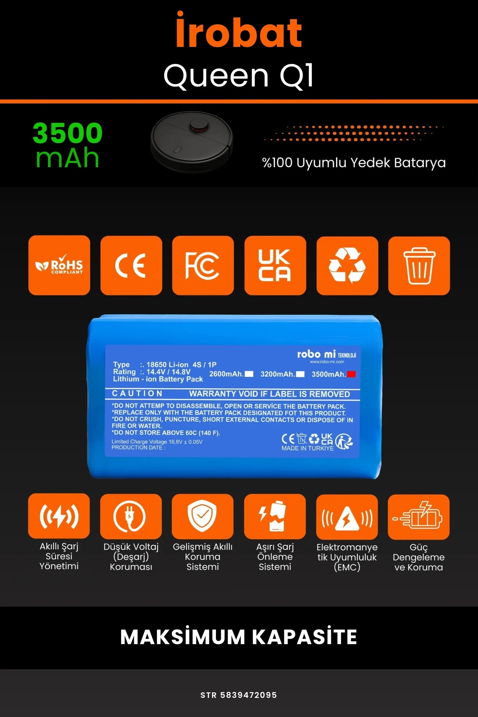 Robot süpürgenizin temizlik gücünü yeniden keşfetmeye hazır olun. Zamanla performansı azalan, şarjı çabuk tükenen robot süpürgeler için özel olarak geliştirilen 3500 batarya, İrobat Queen Q1 modelinizle tam uyum içinde çalışarak cihazınıza uzun ömür ve istikrarlı enerji sağlar.