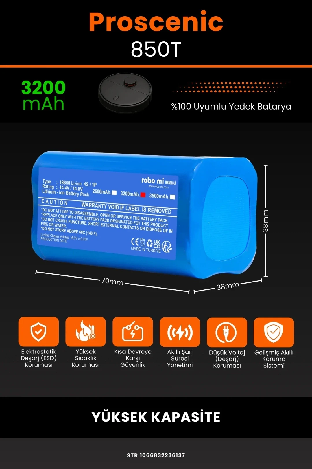 Proscenic 850T Uyumlu 3200mAh Yüksek Kapasiteli Lityum Batarya - Pil