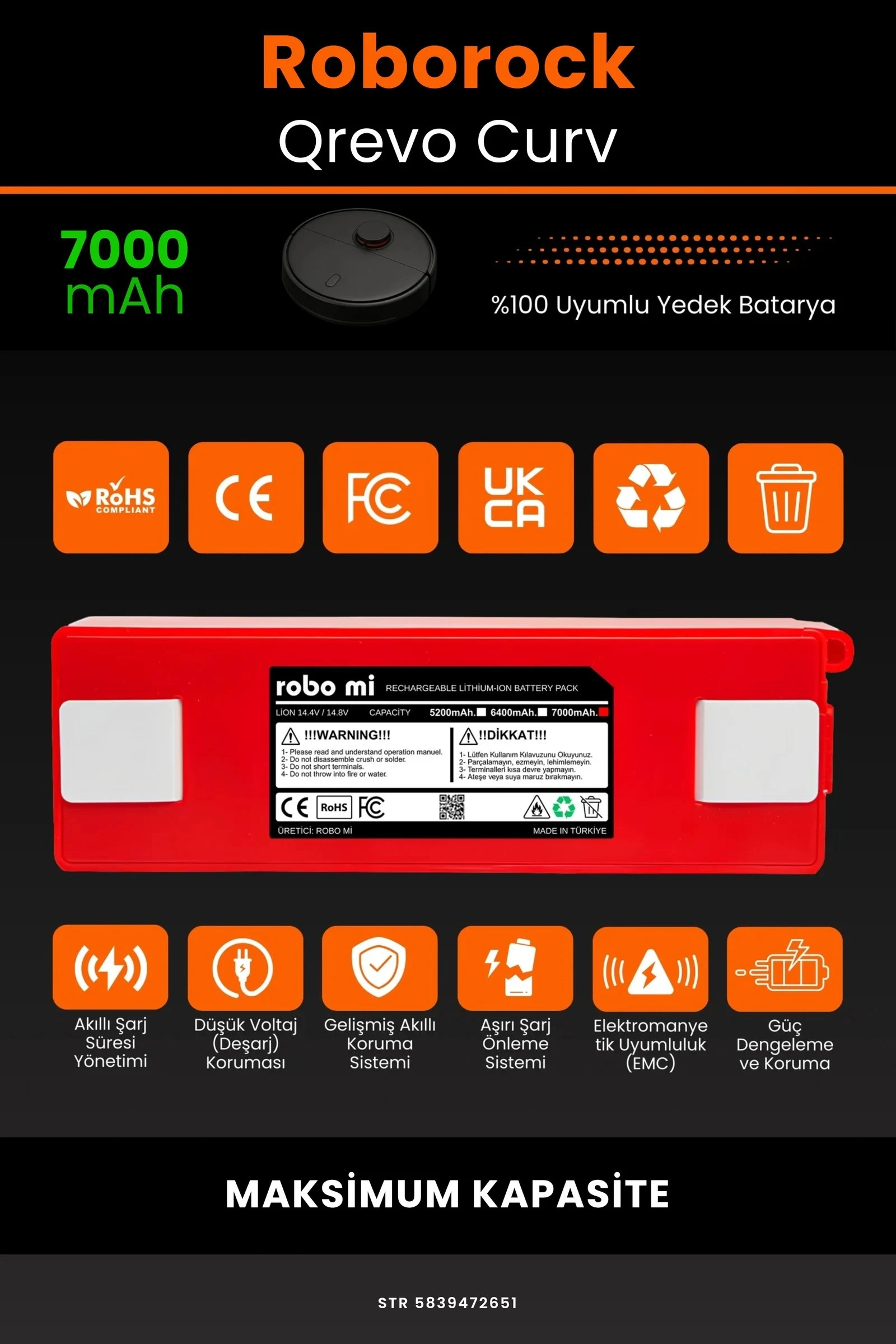 Robot süpürgenizin temizlik gücünü yeniden keşfetmeye hazır olun. Zamanla performansı azalan, şarjı çabuk tükenen robot süpürgeler için özel olarak geliştirilen 7000 batarya, Roborock Qrevo Curv modelinizle tam uyum içinde çalışarak cihazınıza uzun ömür ve istikrarlı enerji sağlar.