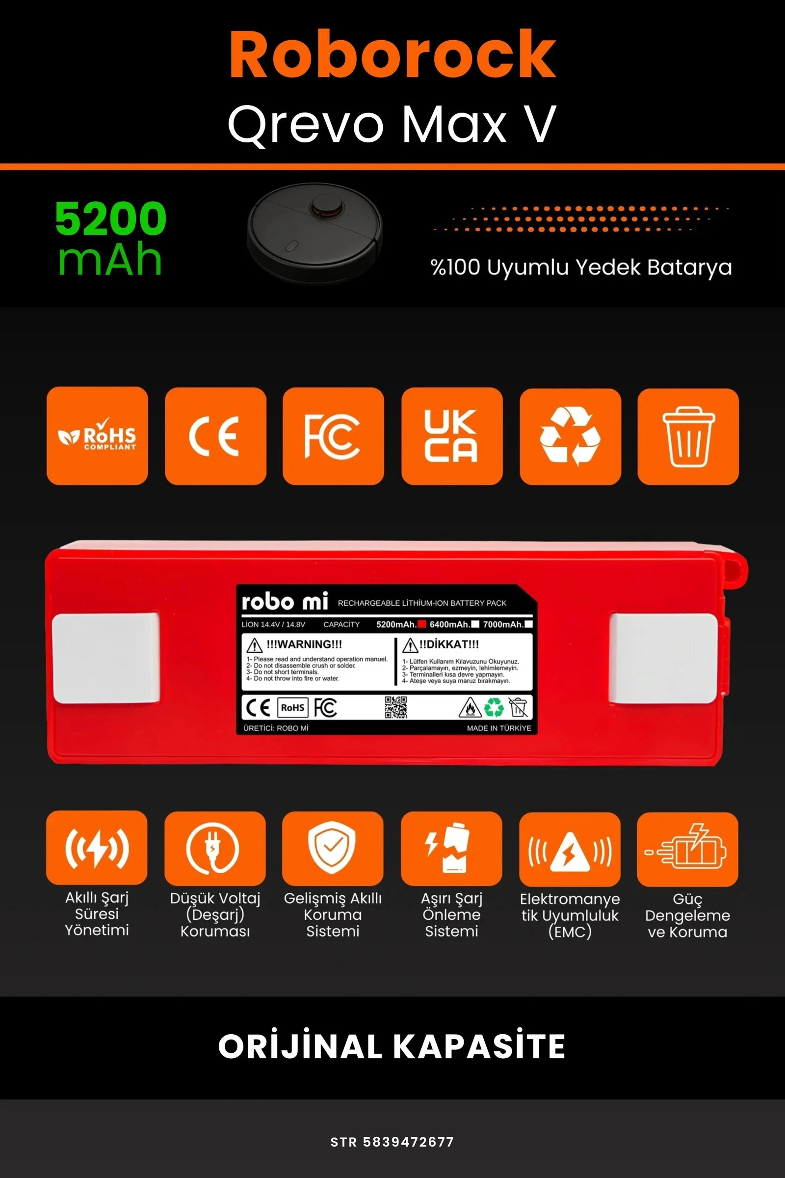 Robot süpürgenizin temizlik gücünü yeniden keşfetmeye hazır olun. Zamanla performansı azalan, şarjı çabuk tükenen robot süpürgeler için özel olarak geliştirilen 5200 batarya, Roborock Qrevo MaxV modelinizle tam uyum içinde çalışarak cihazınıza uzun ömür ve istikrarlı enerji sağlar.