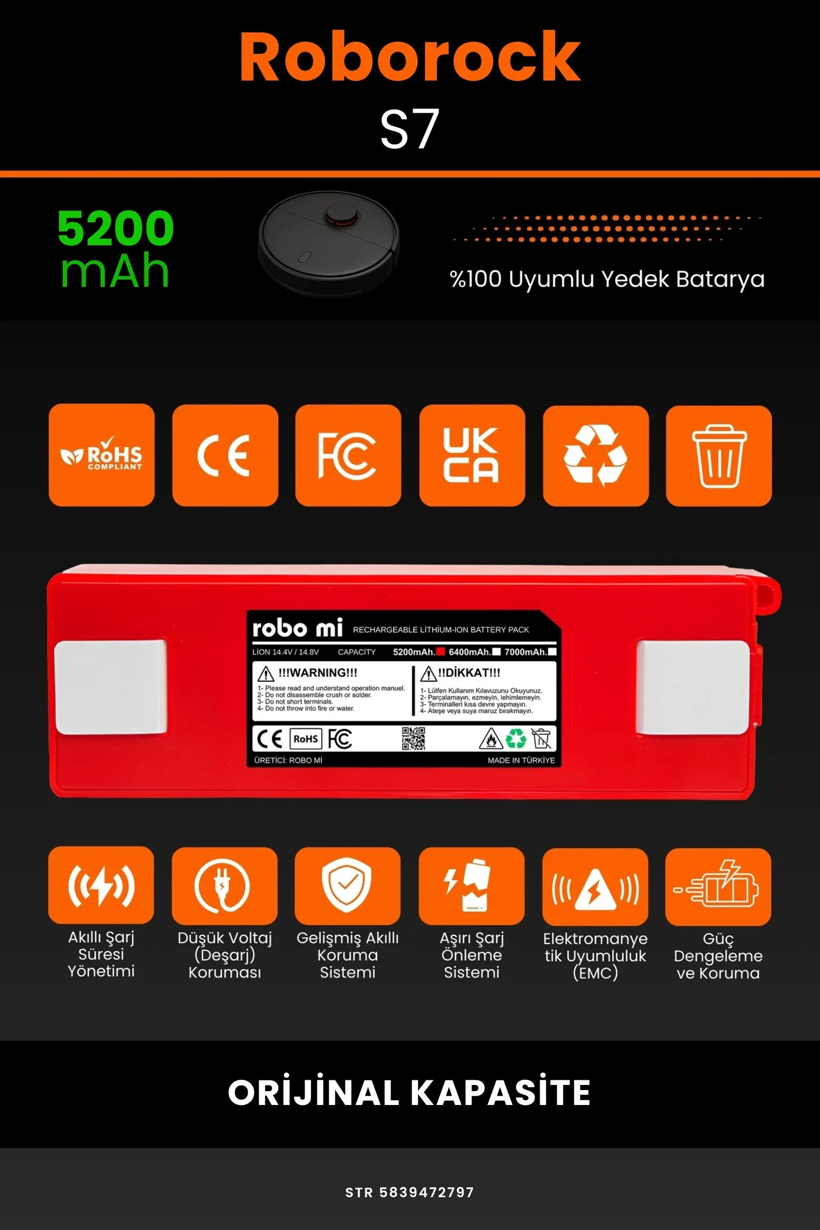 Robot süpürgenizin temizlik gücünü yeniden keşfetmeye hazır olun. Zamanla performansı azalan, şarjı çabuk tükenen robot süpürgeler için özel olarak geliştirilen 5200 batarya, Roborock S7 modelinizle tam uyum içinde çalışarak cihazınıza uzun ömür ve istikrarlı enerji sağlar.