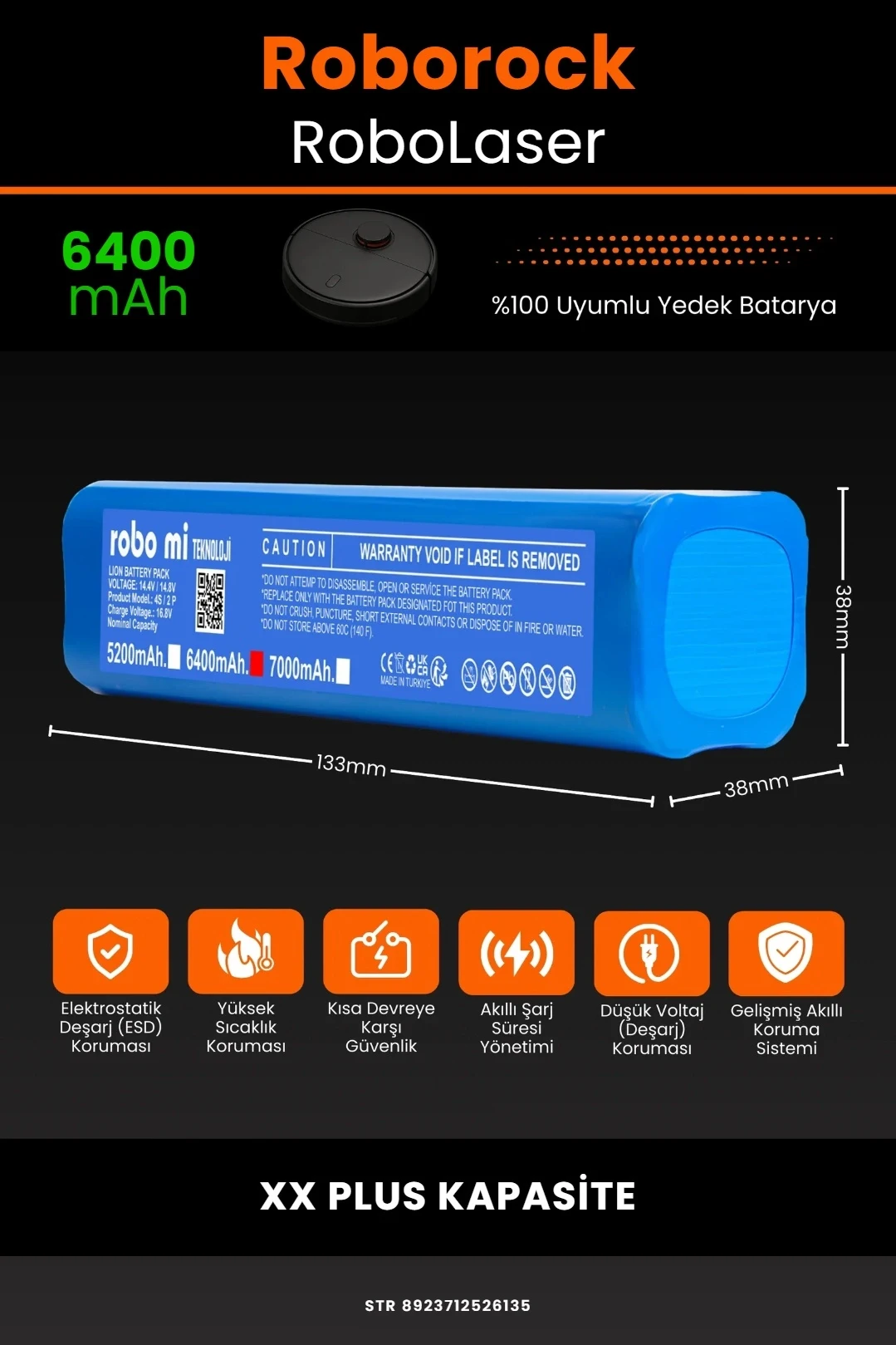 Robot süpürgenizin temizlik gücünü yeniden keşfetmeye hazır olun. Zamanla performansı azalan, şarjı çabuk tükenen robot süpürgeler için özel olarak geliştirilen 6400mAh XL Plus Kapasiteli batarya, Robotuya RoboLaser modelinizle tam uyum içinde çalışarak cihazınıza uzun ömür ve istikrarlı enerji sağlar.