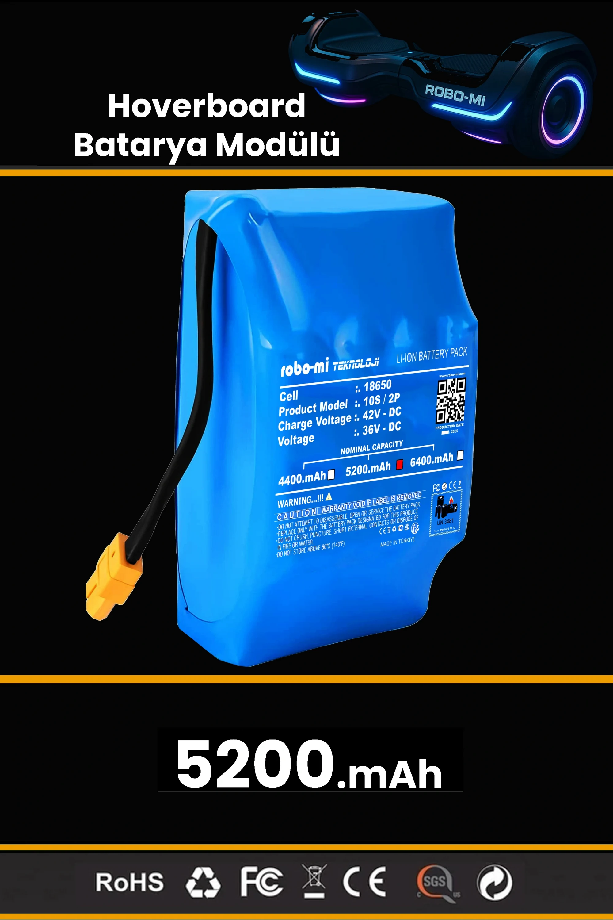 ? Robo-mi Hoverboard Batarya Modülü – Güç,Dayanıklılık ve Akıllı Güvenlik Teknolojisi ile TanışınHoverboard performansında güvenli güç kaynağı en büyük farkı yaratır. Robo-mi olarak geliştirdiğimiz 14.4V 4400mAh / 5200mAh / 6400mAhbatarya modülleri, sadece yüksek kapasite ve uzun ömürlü sunmaklakalmaz; aynı zamanda üretim aşamasındaki mühendislik titizliğiyle fark yaratır.