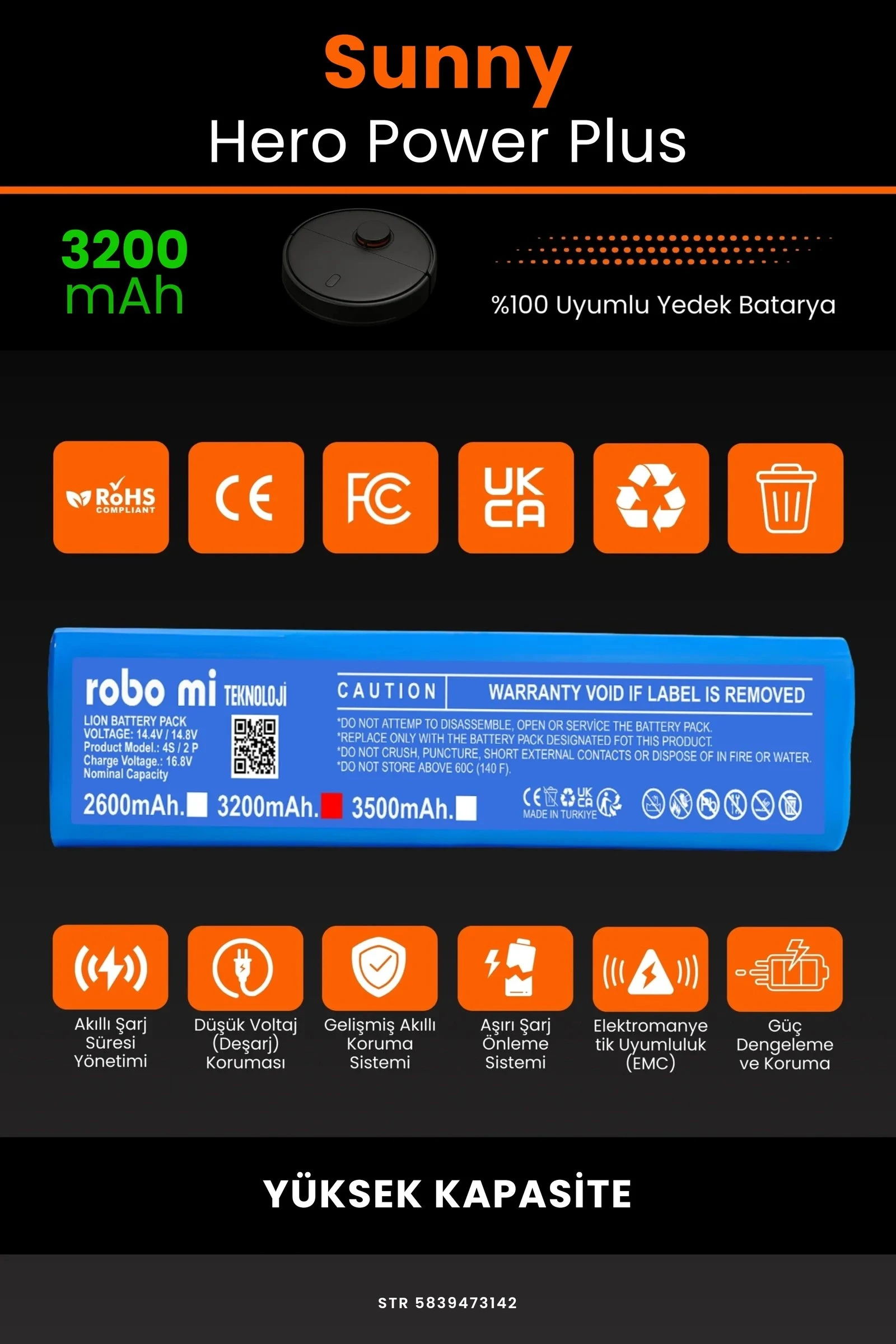 Robot süpürgenizin temizlik gücünü yeniden keşfetmeye hazır olun. Zamanla performansı azalan, şarjı çabuk tükenen robot süpürgeler için özel olarak geliştirilen 3200 batarya, Sunny Hero Power Plus modelinizle tam uyum içinde çalışarak cihazınıza uzun ömür ve istikrarlı enerji sağlar.