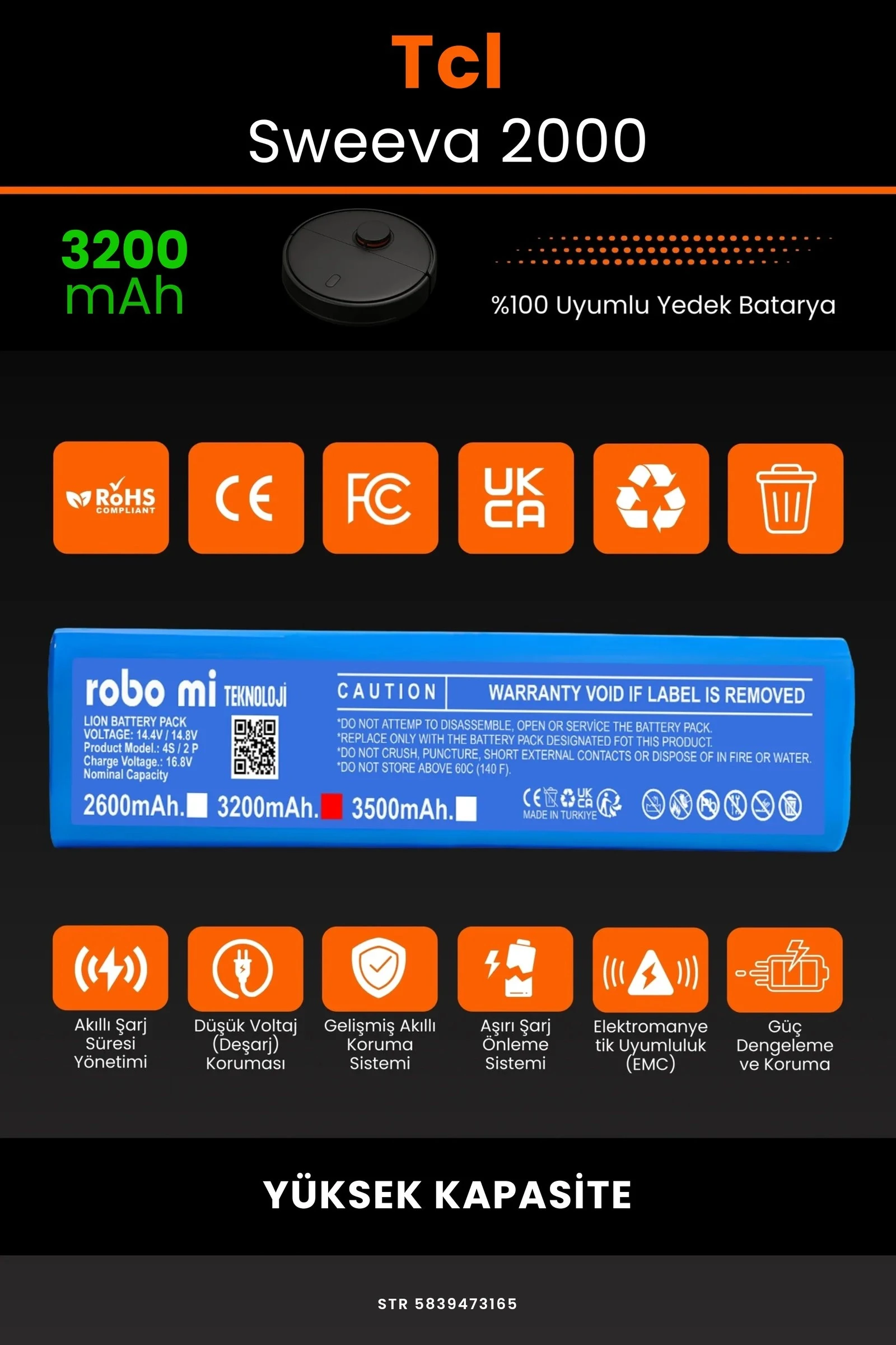 Robot süpürgenizin temizlik gücünü yeniden keşfetmeye hazır olun. Zamanla performansı azalan, şarjı çabuk tükenen robot süpürgeler için özel olarak geliştirilen 3200 batarya, Tcl Sweeva 2000 modelinizle tam uyum içinde çalışarak cihazınıza uzun ömür ve istikrarlı enerji sağlar.