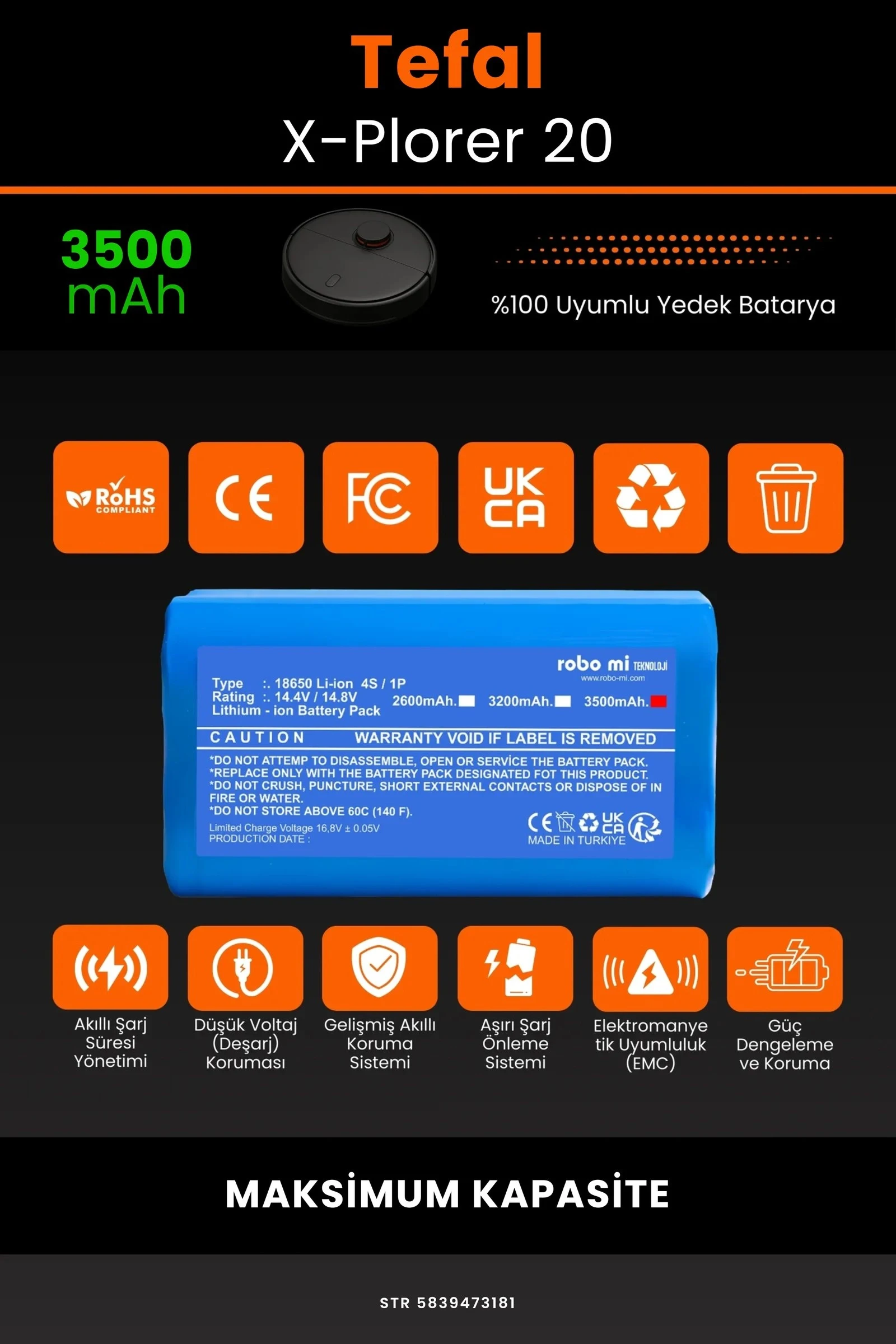 Robot süpürgenizin temizlik gücünü yeniden keşfetmeye hazır olun. Zamanla performansı azalan, şarjı çabuk tükenen robot süpürgeler için özel olarak geliştirilen 3500 batarya, Tefal X-Plorer 20 modelinizle tam uyum içinde çalışarak cihazınıza uzun ömür ve istikrarlı enerji sağlar.