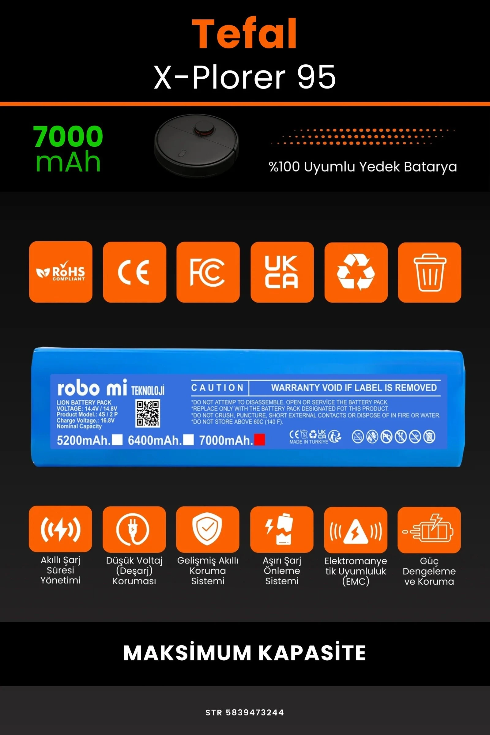 Robot süpürgenizin temizlik gücünü yeniden keşfetmeye hazır olun. Zamanla performansı azalan, şarjı çabuk tükenen robot süpürgeler için özel olarak geliştirilen 7000 batarya, Tefal X-Plorer 95 modelinizle tam uyum içinde çalışarak cihazınıza uzun ömür ve istikrarlı enerji sağlar.