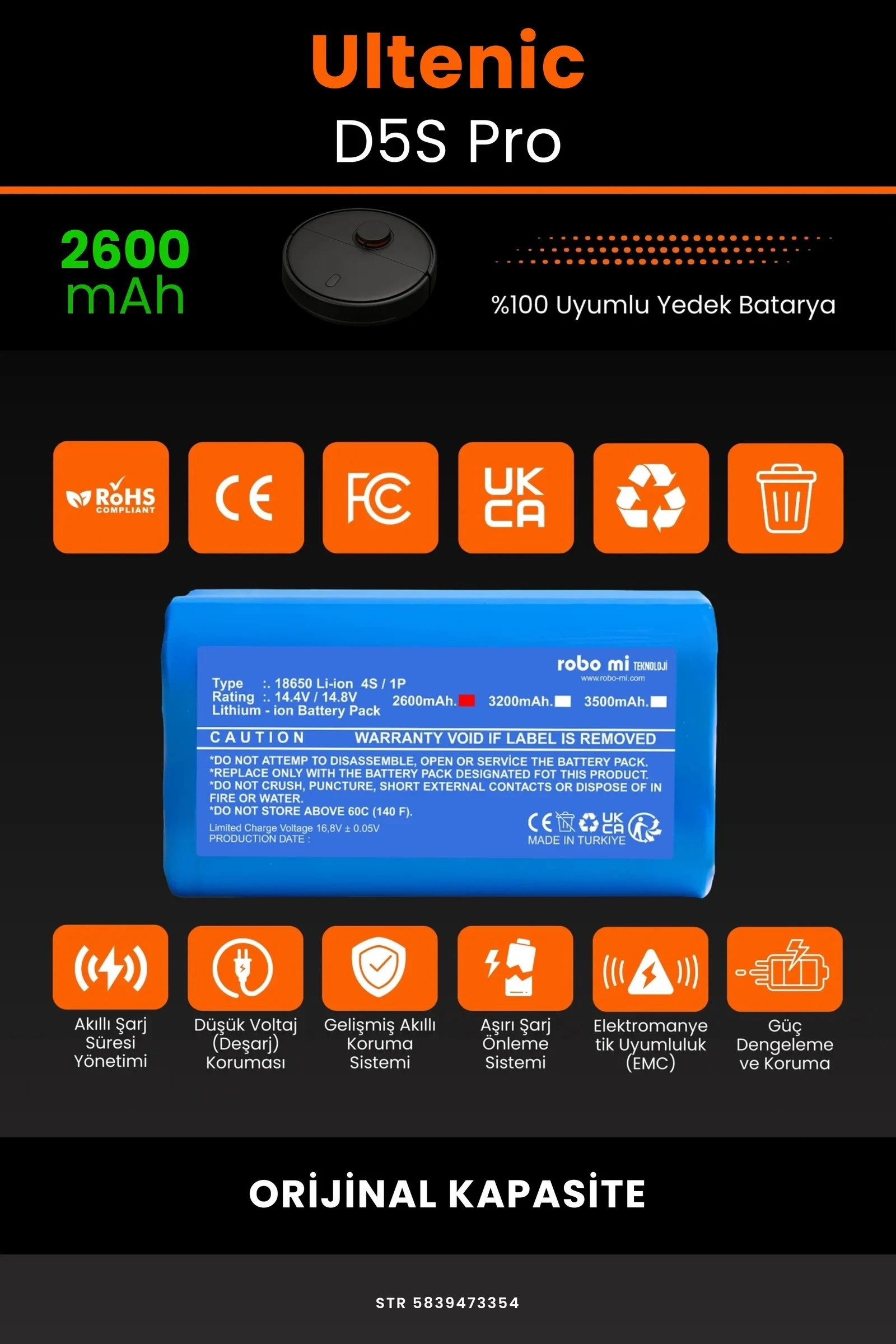 Robot süpürgenizin temizlik gücünü yeniden keşfetmeye hazır olun. Zamanla performansı azalan, şarjı çabuk tükenen robot süpürgeler için özel olarak geliştirilen 2600 batarya, Ultenic D5S Pro modelinizle tam uyum içinde çalışarak cihazınıza uzun ömür ve istikrarlı enerji sağlar.