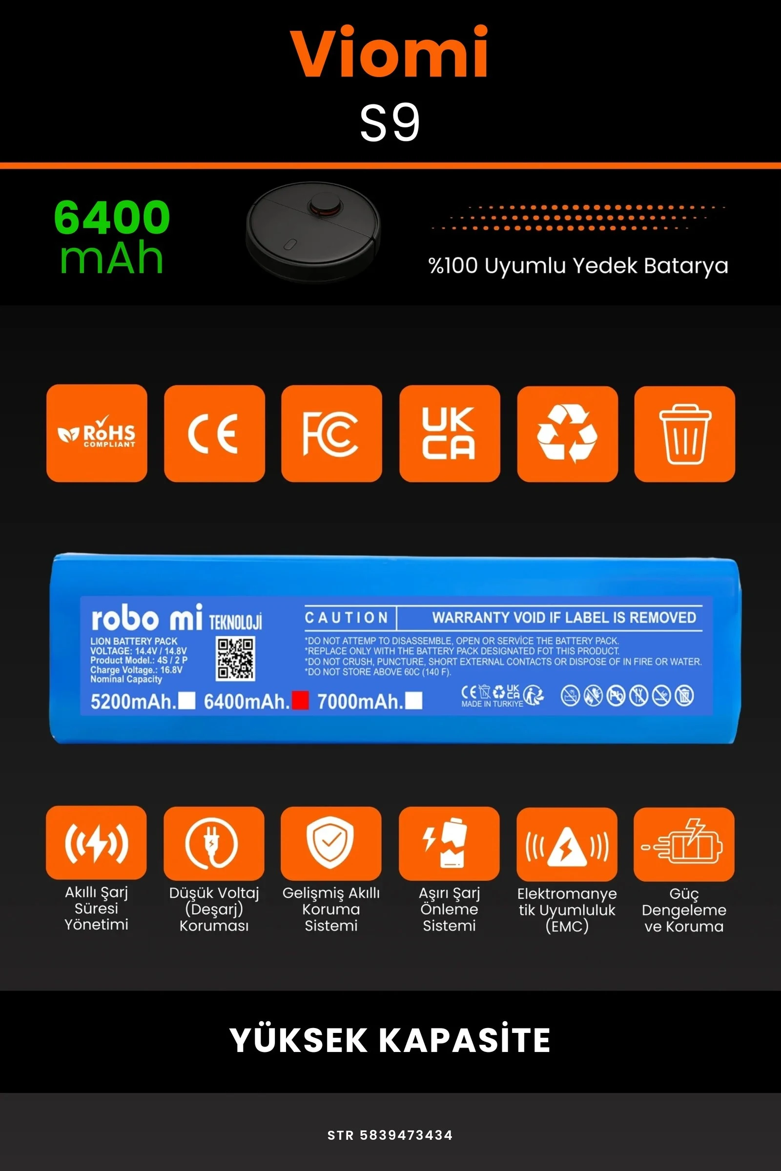 Robot süpürgenizin temizlik gücünü yeniden keşfetmeye hazır olun. Zamanla performansı azalan, şarjı çabuk tükenen robot süpürgeler için özel olarak geliştirilen 6400 batarya, Viomi S9 modelinizle tam uyum içinde çalışarak cihazınıza uzun ömür ve istikrarlı enerji sağlar.