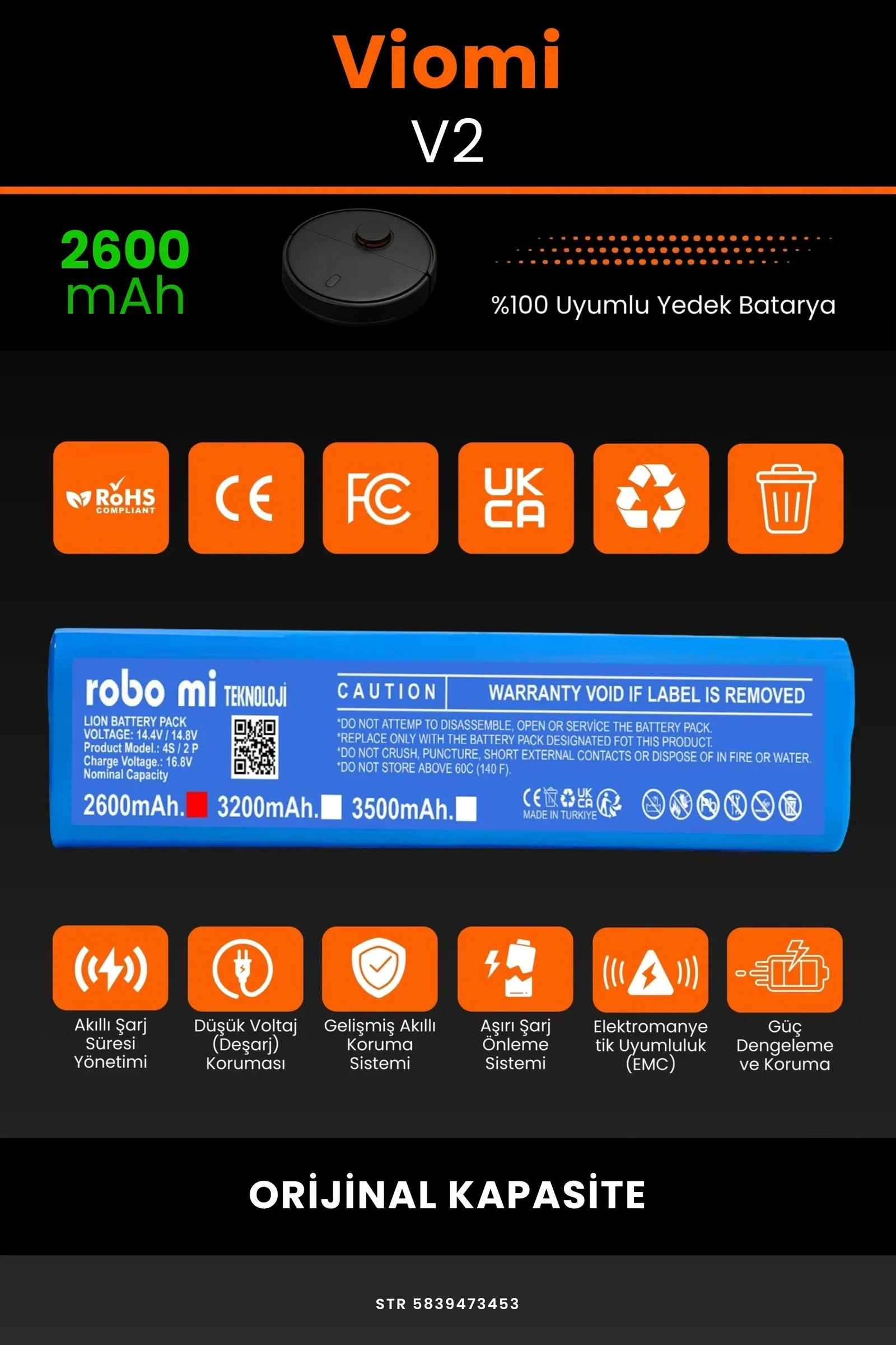 Robot süpürgenizin temizlik gücünü yeniden keşfetmeye hazır olun. Zamanla performansı azalan, şarjı çabuk tükenen robot süpürgeler için özel olarak geliştirilen 2600 batarya, Viomi V2 modelinizle tam uyum içinde çalışarak cihazınıza uzun ömür ve istikrarlı enerji sağlar.