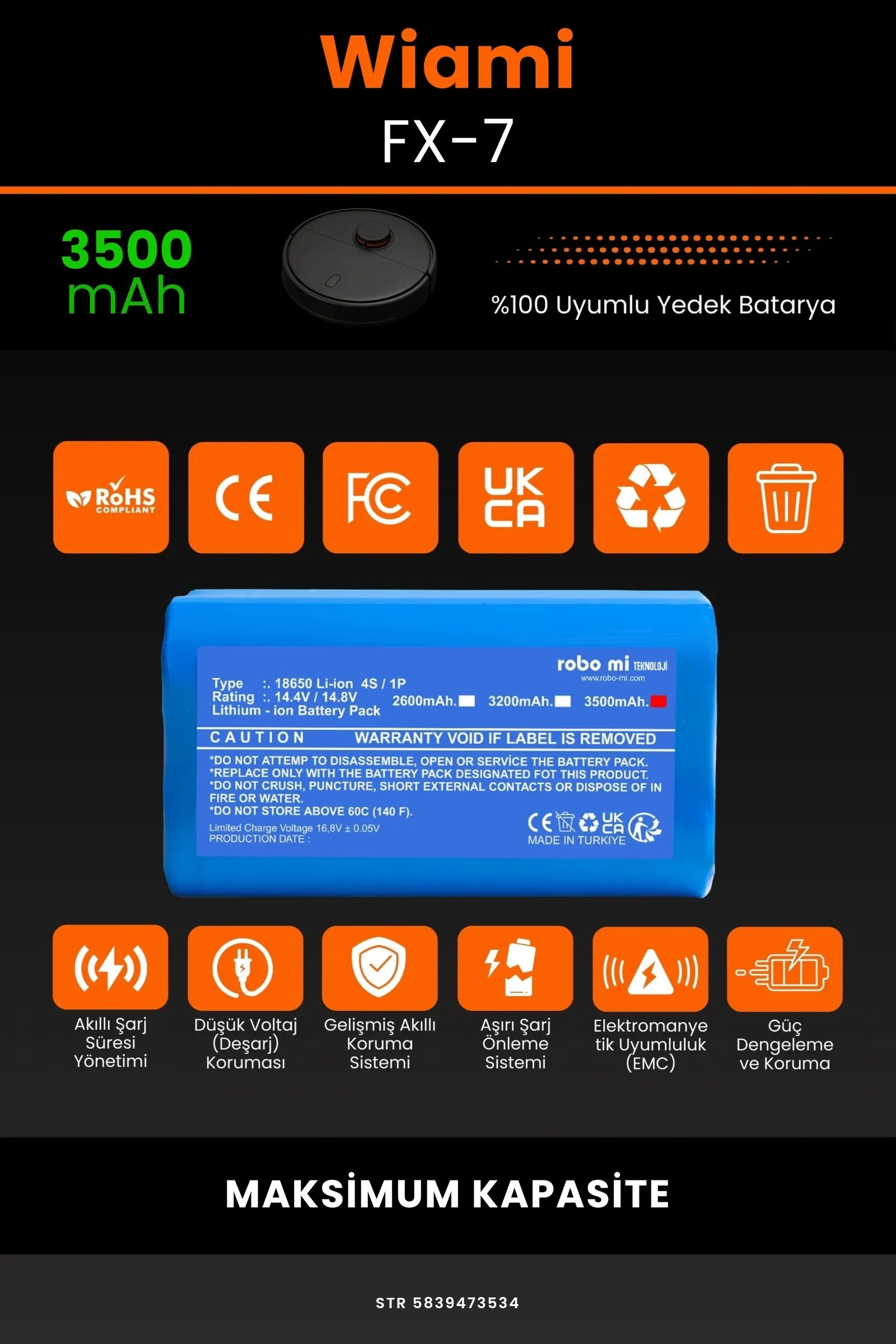 Wiami FX-7 3500 Robot Süpürge Bataryası