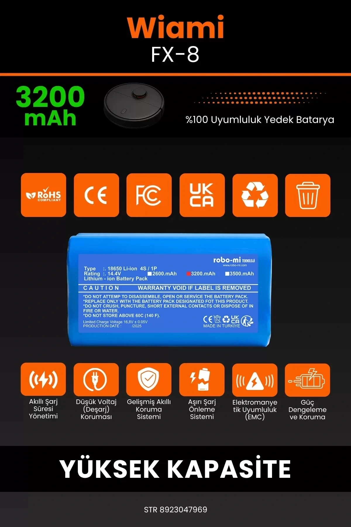 Robot süpürgenizin temizlik gücünü yeniden keşfetmeye hazır olun. Zamanla performansı azalan, şarjı çabuk tükenen robot süpürgeler için özel olarak geliştirilen 3200 batarya, Wiami FX-8 modelinizle tam uyum içinde çalışarak cihazınıza uzun ömür ve istikrarlı enerji sağlar.