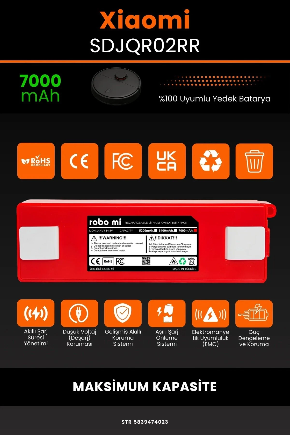 Robot süpürgenizin temizlik gücünü yeniden keşfetmeye hazır olun. Zamanla performansı azalan, şarjı çabuk tükenen robot süpürgeler için özel olarak geliştirilen 7000 batarya, Xiaomi Mi Robot Vacuum SDJQR02RR modelinizle tam uyum içinde çalışarak cihazınıza uzun ömür ve istikrarlı enerji sağlar.