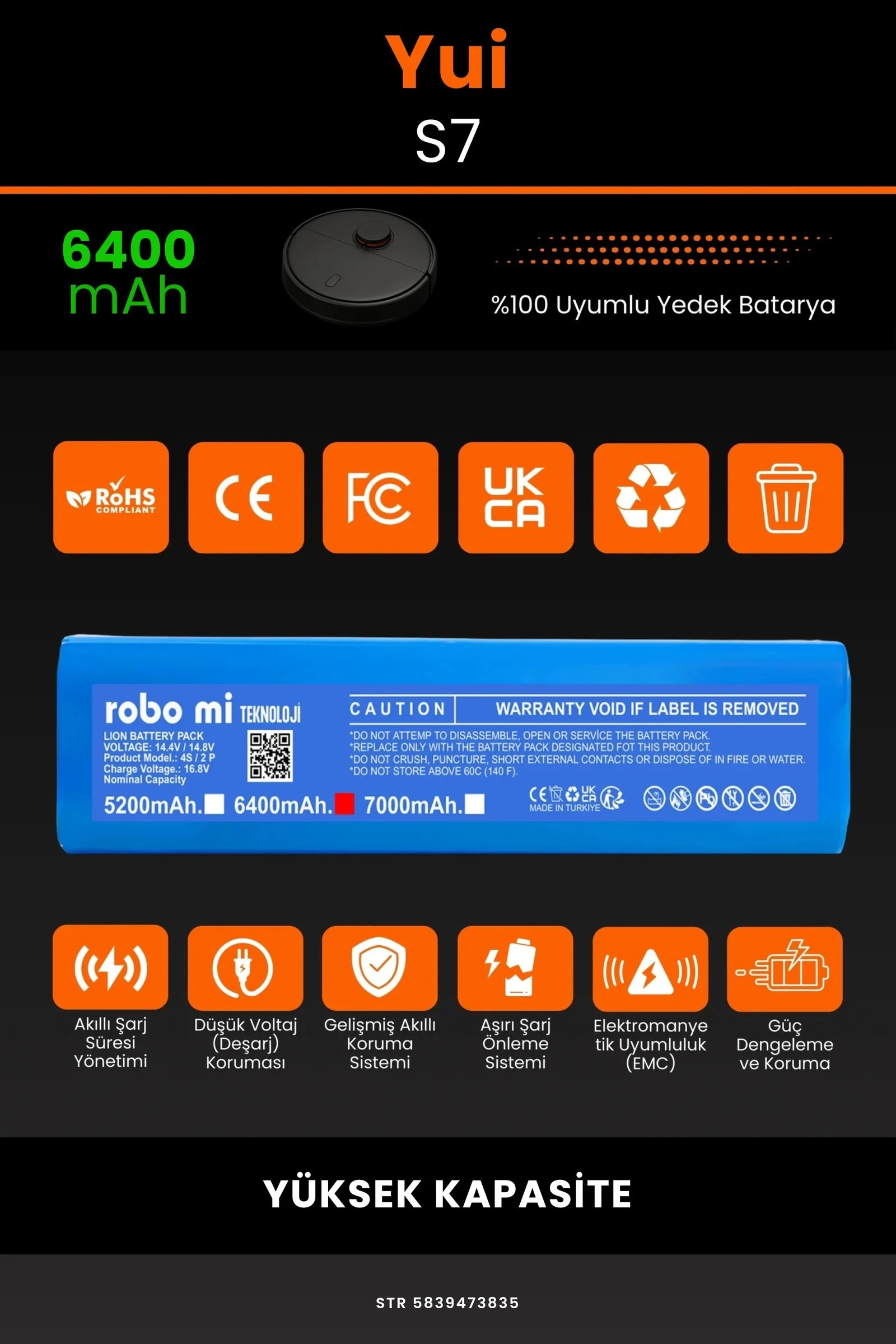Robo-Mi / Yui S7 6400.mAh Robot Süpürge Bataryası